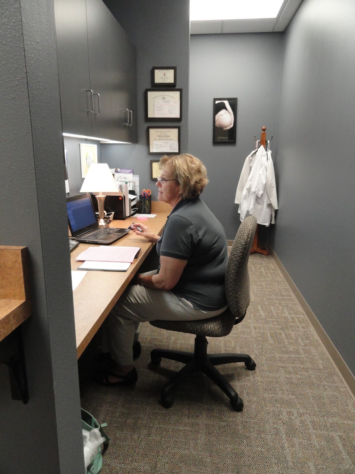 Certified nurse midwife Belinda Lassen works in one of the pods in the new prenatal wing at Promise CHC. |
