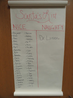 A scroll with “Santa’s List” was pasted to his door with two columns: Dr. Lassen was the lone name on the “Naughty” list on the right side. The names of the rest of Promise’s staff were neatly handwritten in the “Nice” column.