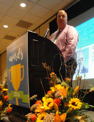 Don Ortman reminisces about his years of service on the Promise Community Health Center board while accepting the Iowa Primary Care Association’s 2016 Carl Kulczyk Memorial Award on Tuesday. |