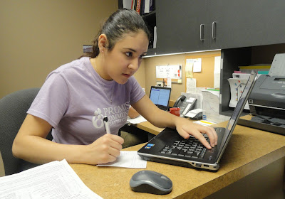 | Registered nurse Kari Ney uses her laptop computer in the prenatal wing at Promise Community Health Center. Promise has been awarded a $45,361 grant to enhance health information technology systems. |