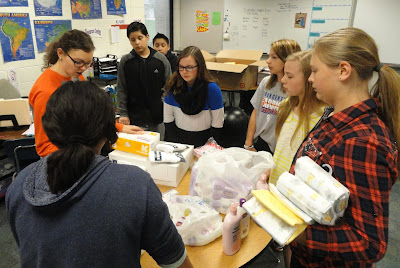 Sixth-grade teacher Kelsey Gibbons said the students in her group wanted to do a project to help kids in their own community. They threw out ideas and voted on them. Ultimately, they decided to assemble bags full of baby supplies and to donate them to Promise Community Health Center to distribute to families of newborn babies who need them. Promise, which serves many families and children who are at or below the poverty level, also had a Baby Bundles program in place that relies on community donations.